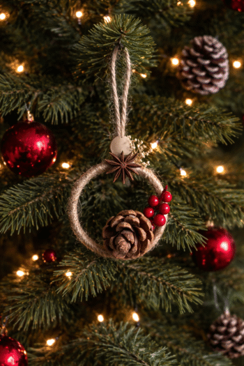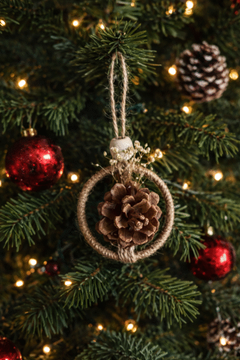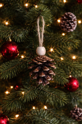A natural pine cone ornament with a rustic charm — perfect for decorating Christmas trees, cozy corners, or adding a seasonal touch to your space.